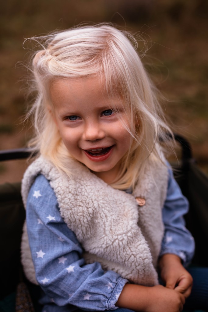 We lopen samen het bos in, de kleinste in het karretje dat ik altijd meebreng. Hier en daar stoppen we voor foto’s terwijl we richting de duinrand wandelen.
