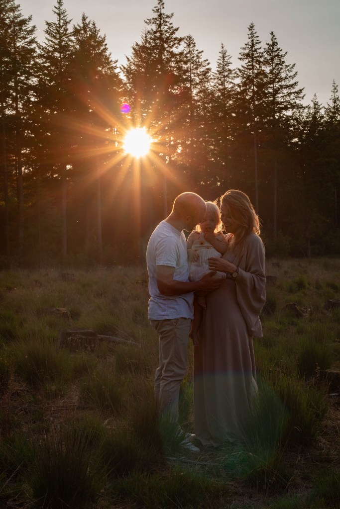 Als er iets is waar mijn hart een sprongetje van maakt, dan is het wel de zonsondergang. Op het strand, of…in het bos. Want dat zonnetje dat achter de bomen weg zakt, met dat prachtige warme licht, dat is magisch. Zet er een gezellig gezinnetje voor en mijn avond is helemaal gemaakt.