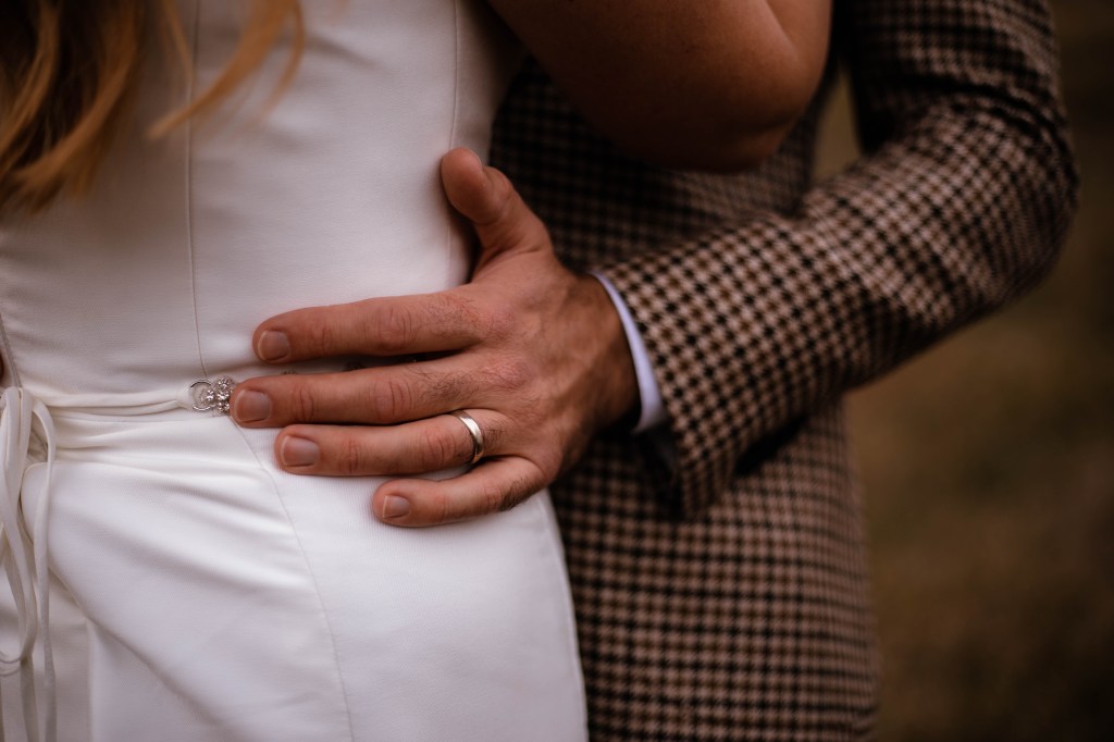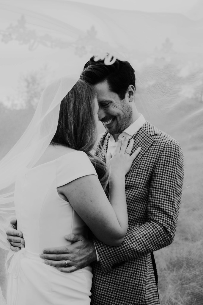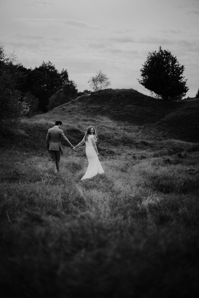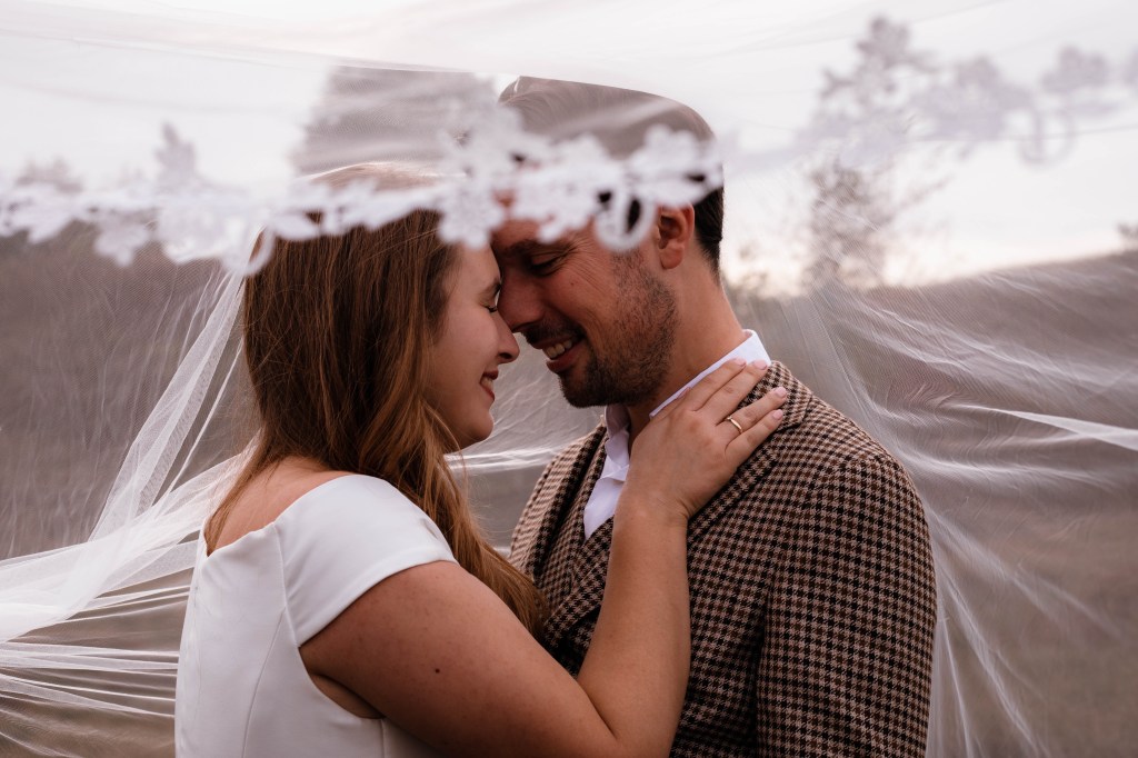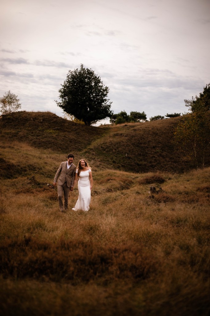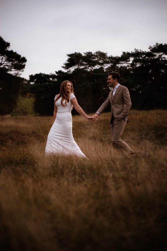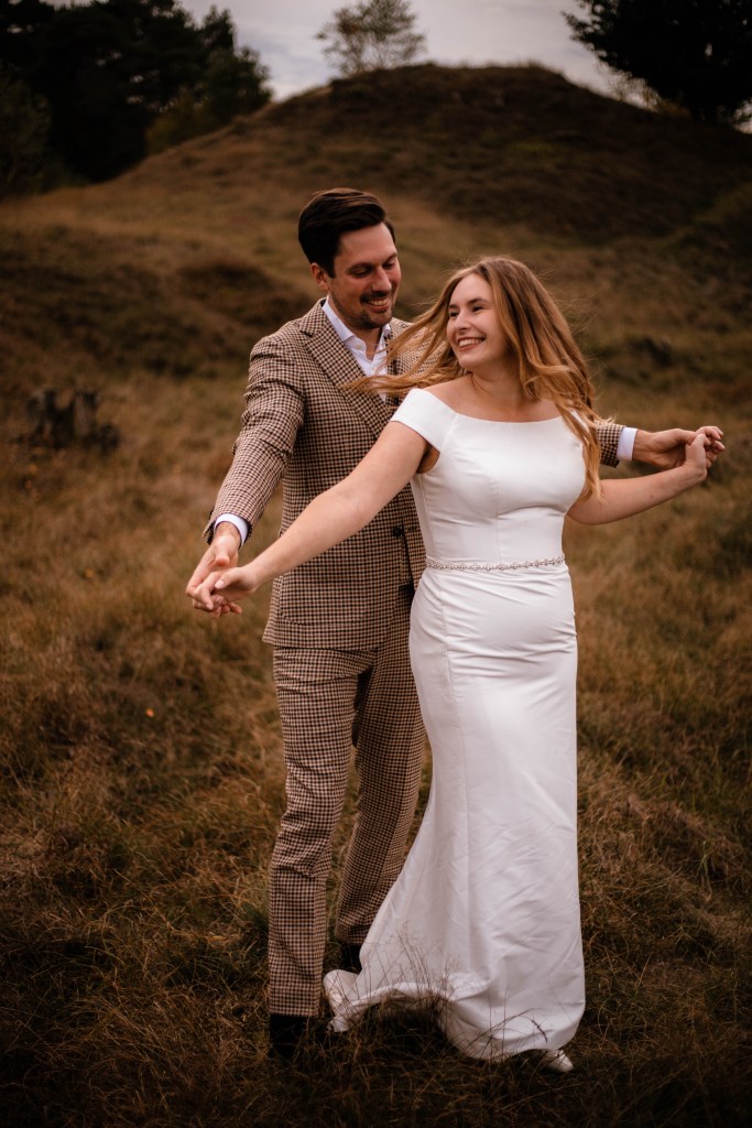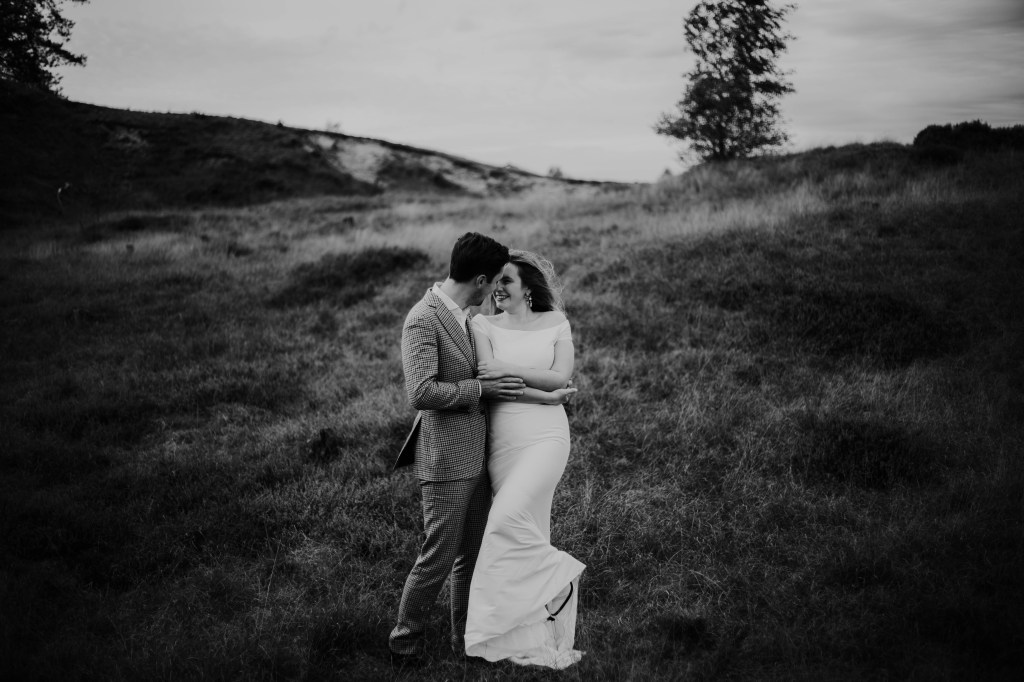Charlotte en Daan deden de fotoshoot nog even dunnetjes over — dit keer zonder tijdsdruk, zonder de ceremonie die al in hun hoofd speelde. Gewoon even bewust samen zijn. Nog één keer bruid en bruidegom.