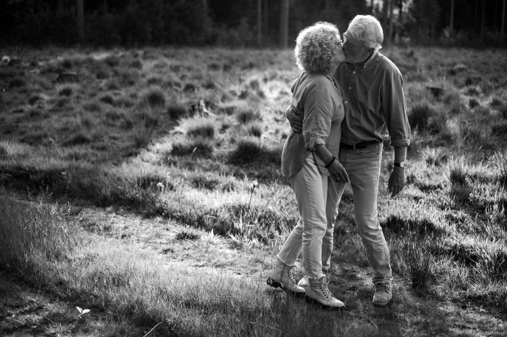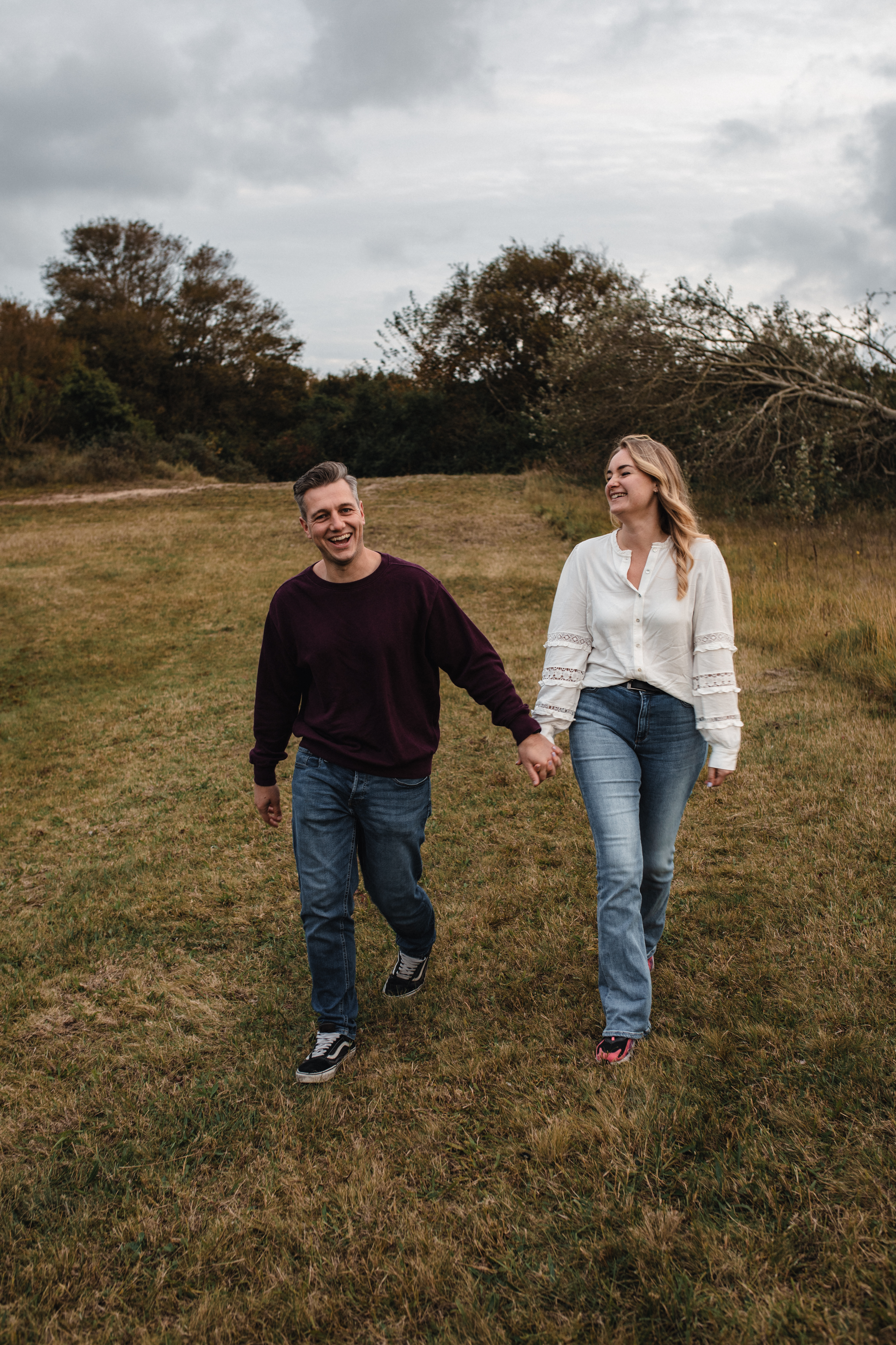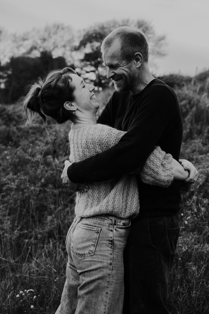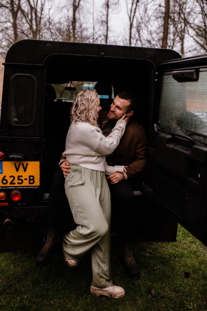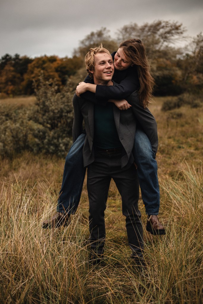 De eerste blik, de eerste zoen. Dat wat je in haar bewondert, dat wat je aan hem verbaast. Het kleine beetje ongemak dat een shoot met zich meebrengt, verandert langzaam maar zeker in een moment samen – waar alles verdwijnt behalve de bomen, de wind en de liefde. En het zachte geklik van mijn camera, die dit moment voor jullie bewaart.